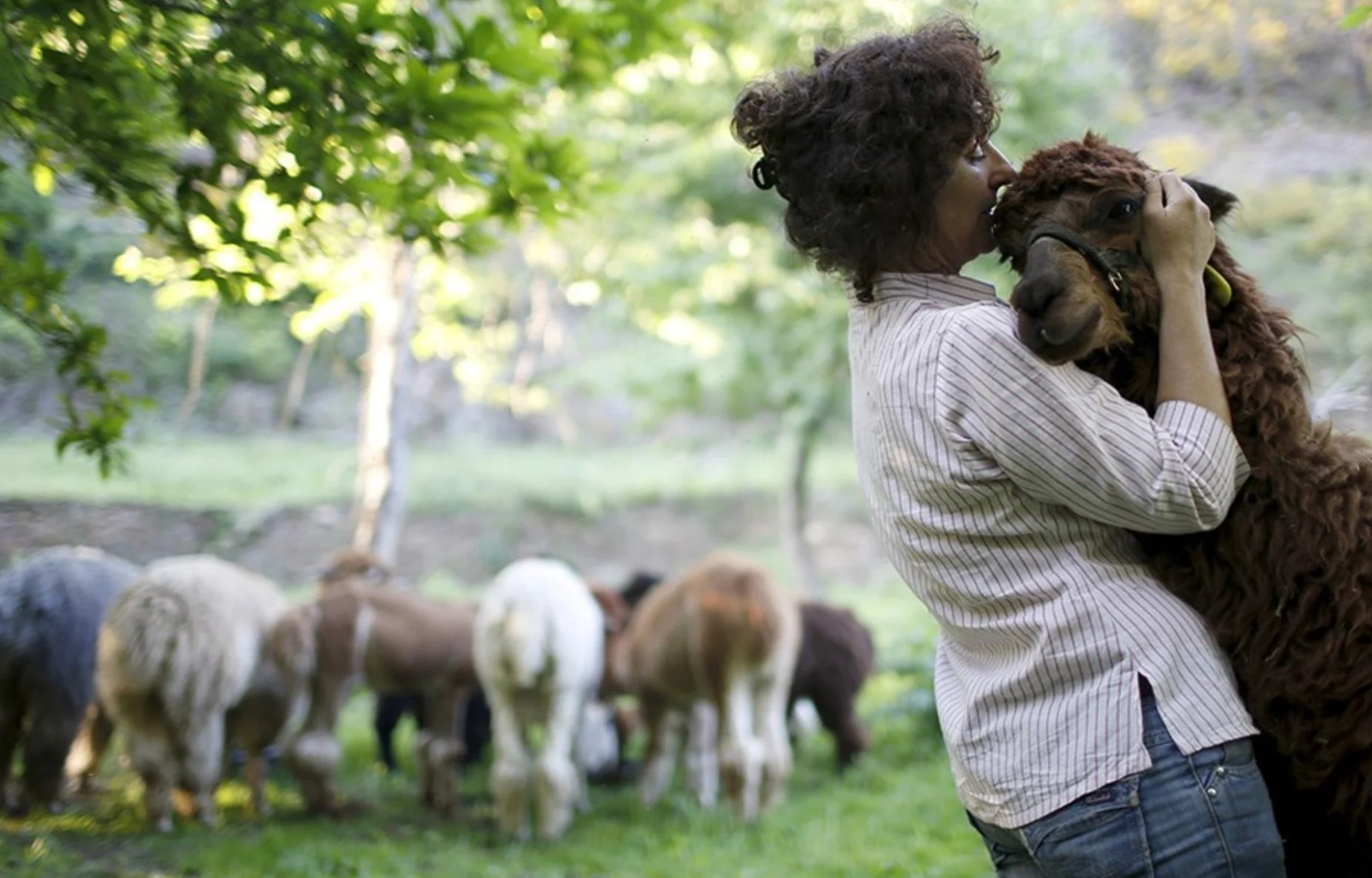 Lisa Vella-Gatt, 46, hugs her alpaca Rowen at her farm near Benfeita, Portugal. Lisa, who is Maltese, went to Portugal from England in 2009 to set up Monte Frio Alpacas, a project in which she breeds the wool-producing species . Lisa’s 14 alpacas produce about 50 kilos of wool annually.
